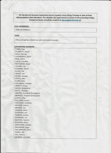 1. A Cumulative Impact Assessment (CIA) of all cuts and changes affecting sick & disabled people, their families and carers, and a free vote on repeal of the Welfare Reform Act.
